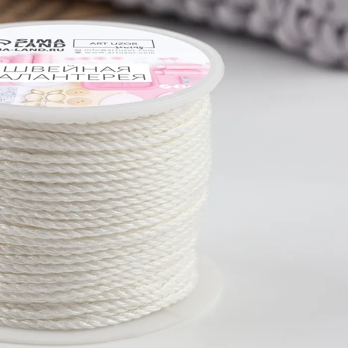 Нить для плетения из полипропилена и полиэстера обладает высокой прочностью и долговечностью. Имеет диаметр 2 мм, что отлично подойдёт для плетения узоров макраме, в качестве основы для бус, а также для декорирования интерьера.