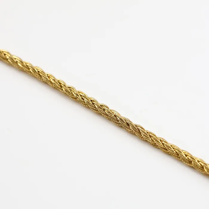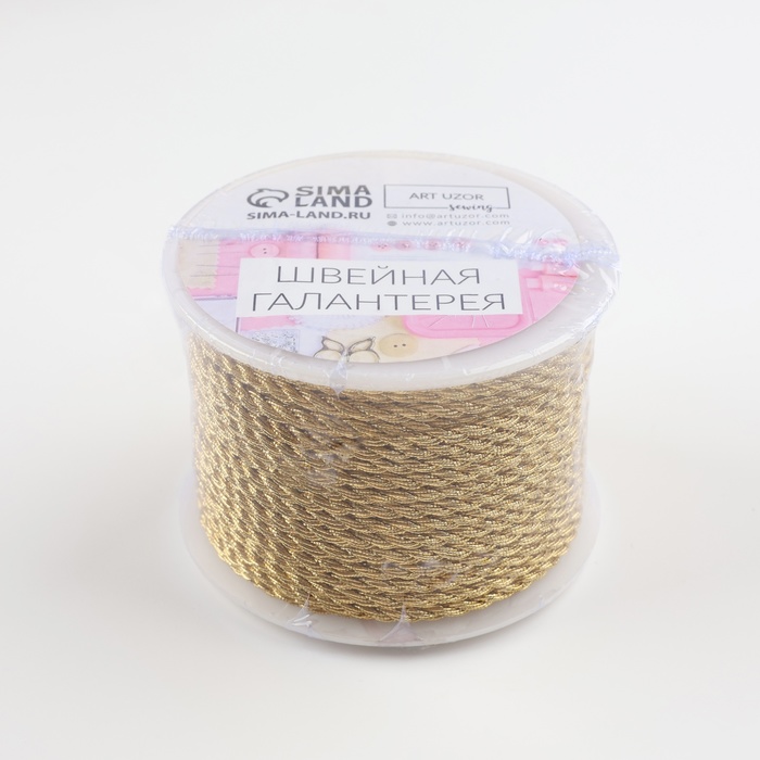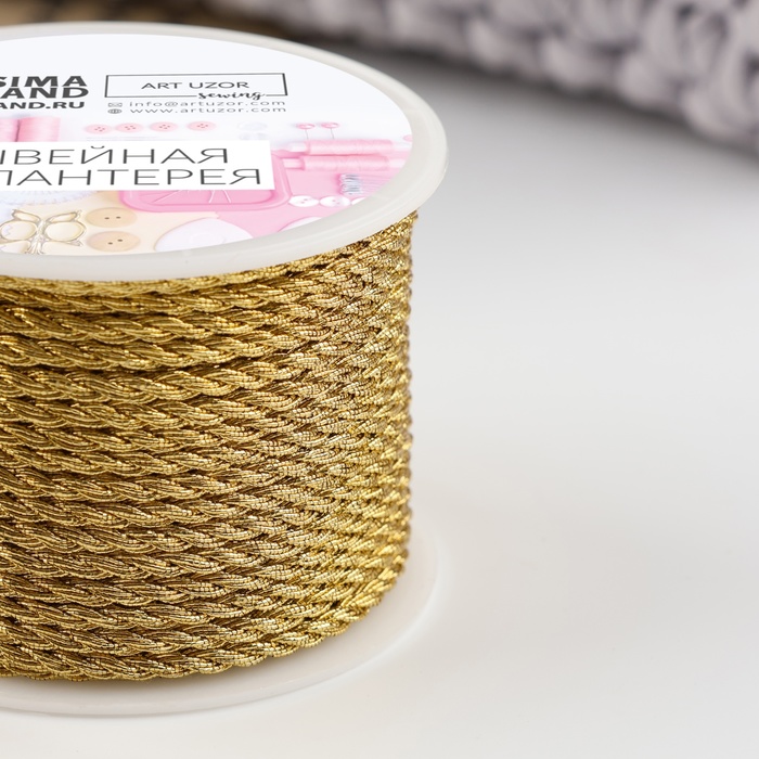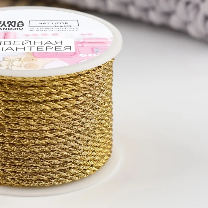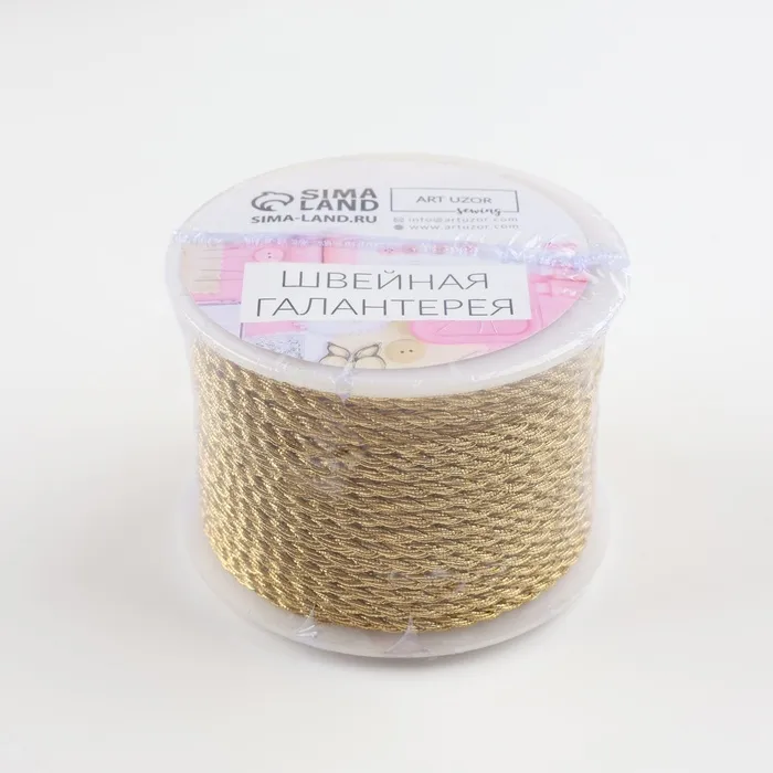 Нить для плетения из полипропилена и полиэстера обладает высокой прочностью и долговечностью. Золотистый цвет придаёт изделиям роскошный и праздничный вид. Подходит для украшения подарков, бирок, одежды, новогодних ёлочных игрушек, для плетения браслетов, а также для создания декора для дома.