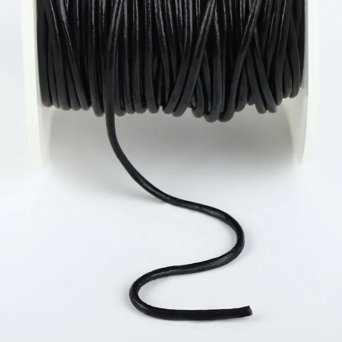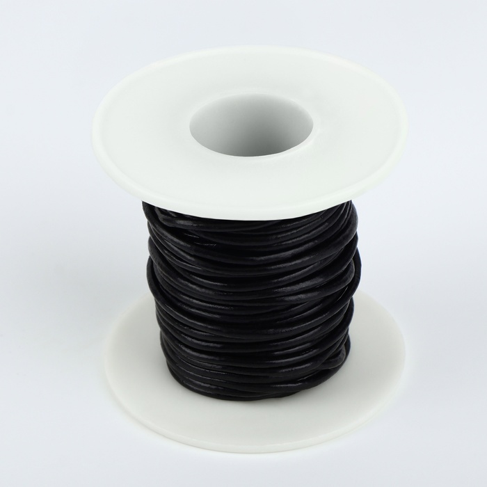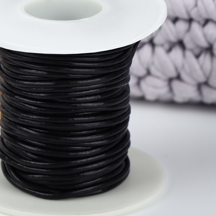 Нить для плетения, натуральная кожа, d=2 мм, 10±0.5 м, чёрная
