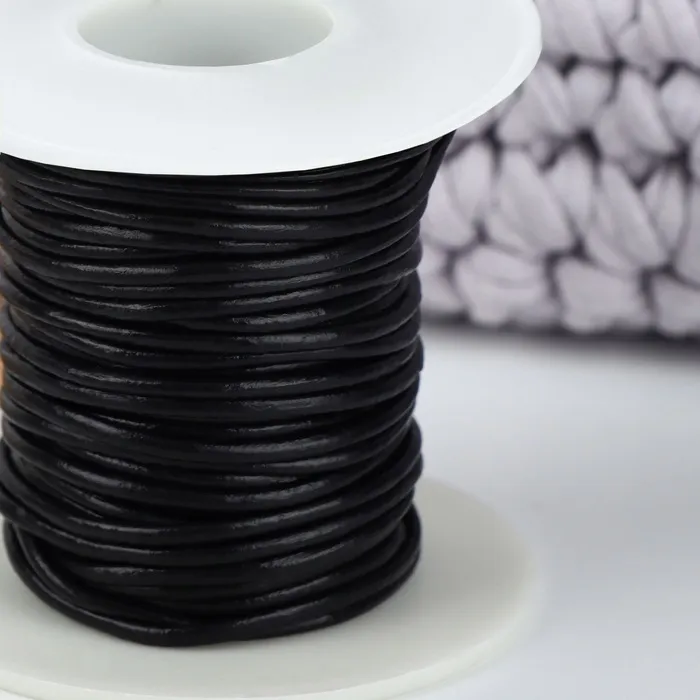 Нить для плетения из натуральной кожи — это прочный и гибкий материал. Она обладает износостойкостью и долговечностью. Идеально подходит для плетения украшений: ожерелий, бус, подвесок, а также в качестве фурнитуры для одежды и обуви.
