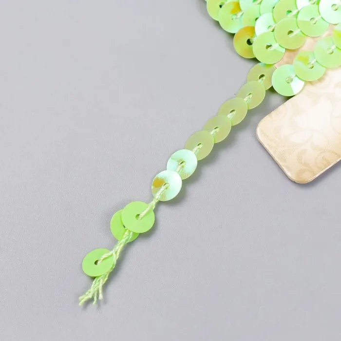 Нить из пайеток перламутр «Зелёная», намотка 2.5 м – необходимый атрибут как для творческой личности, для дизайнера-любителя, так и для профессионала. Применение паеток очень обширно, все зависит от фантазии рукодельника. Это и скрапбукинг, и плетение, и просто украшение интерьер-аксессуаров. Их яркие цвета и приятный блеск привлекают и бросаются в глаза, запоминаются и даже умиляют.