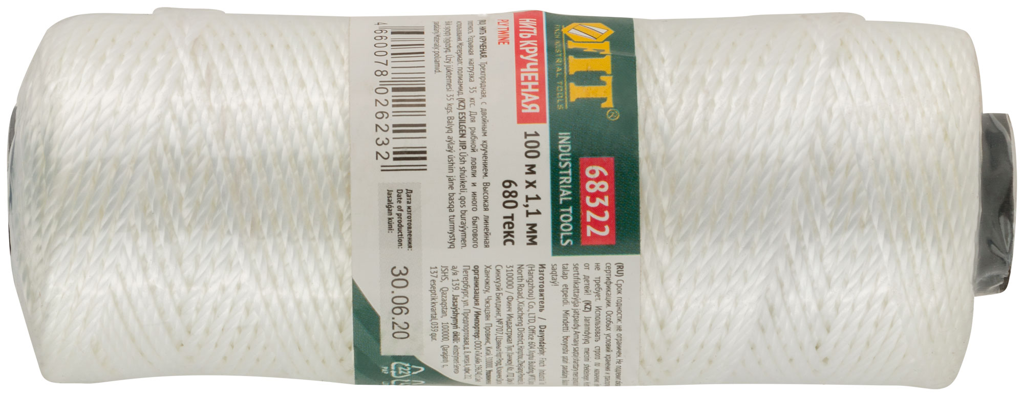 Нить изготовлена из трехпрядного капрона с двойным кручением, что гарантирует высокую прочность и устойчивость к разрывам. Линейная плотность в 680 текс позволяет выдерживать нагрузку до 35 кг.