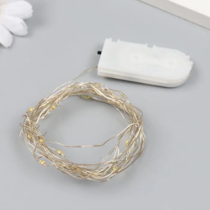 Нить светодиодная для сувениров цвет белый 30 диодов длина 3 м от батареек 2хCR2032