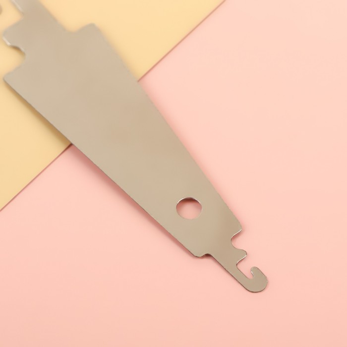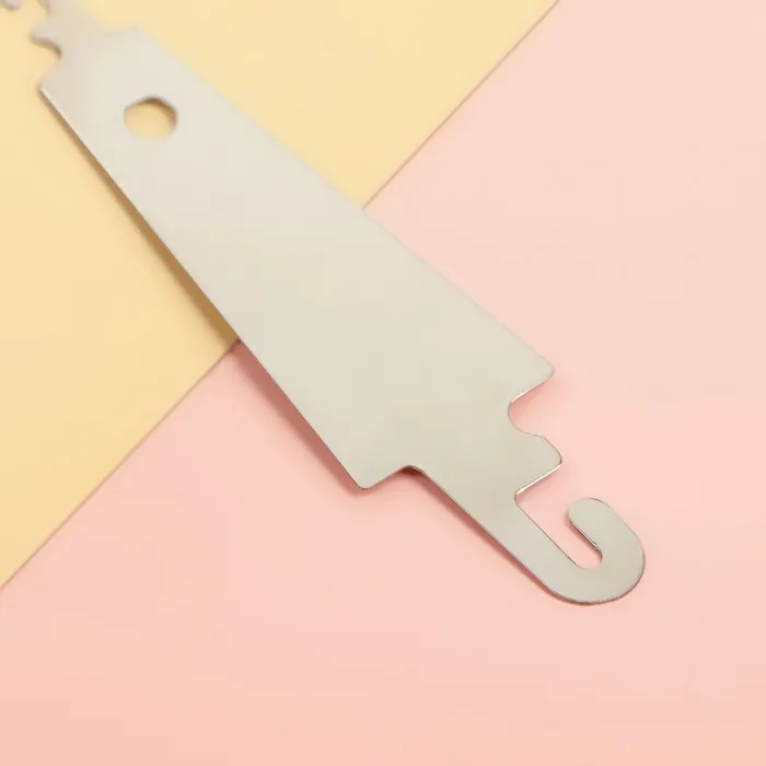 Нитевдеватель — тонкая пластина, которая имеет два крючка, подходящие под иглы любого размера. Инструмент используется для вышивания нитками мулине и очень удобен в использовании. Просто вставьте крючок в ушко иглы, зафиксируйте нить на крючке и вытащите нитевдеватель из ушка.