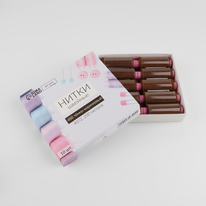 Нитки 40/2, 200 м, тёмно-коричневые №488, цена за 1 штуку — Характеристики