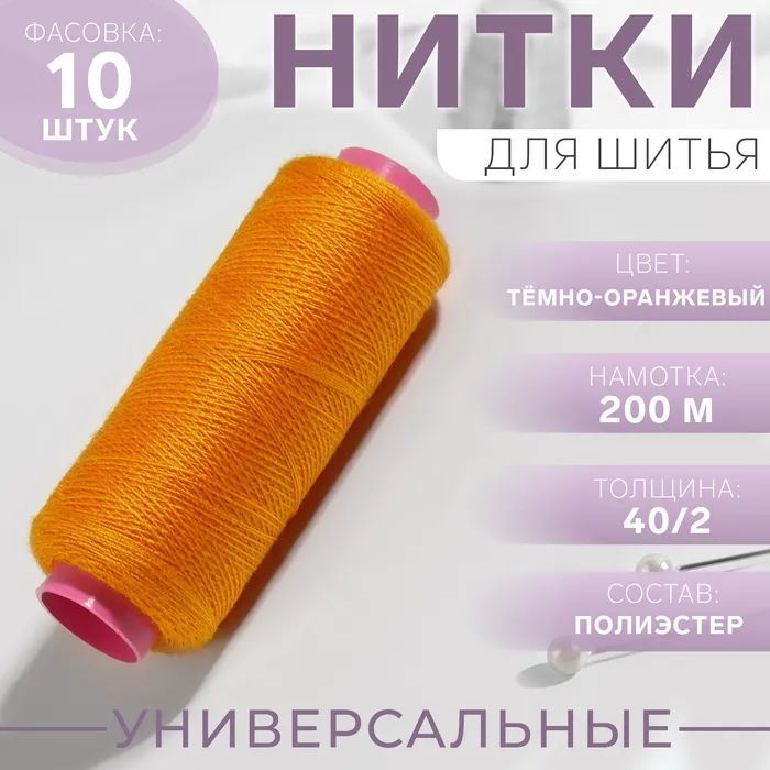 Нитки 40/2, 200 м, тёмно-оранжевые №140 — Характеристики