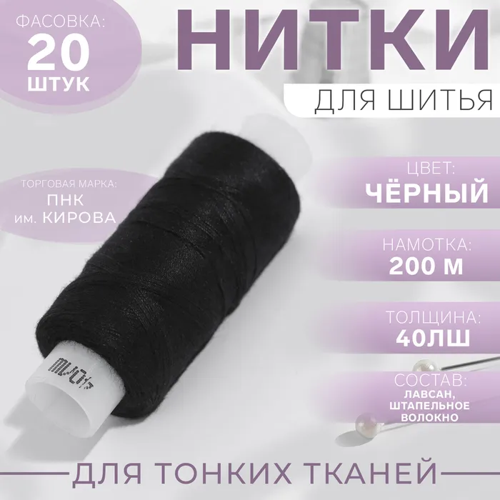 Нитки 40ЛШ, 200 м, цвет чёрный №6818, цена за 1 штуку — Характеристики