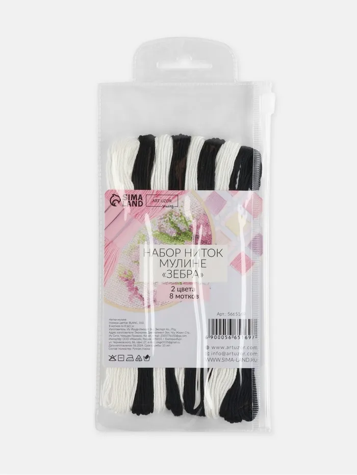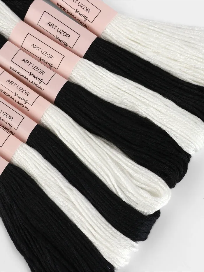 Нитки мулине, 8±1 м, 8 шт., белые, чёрные