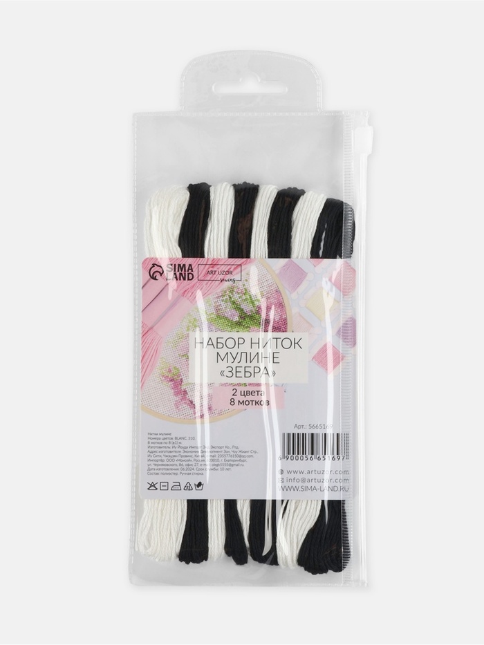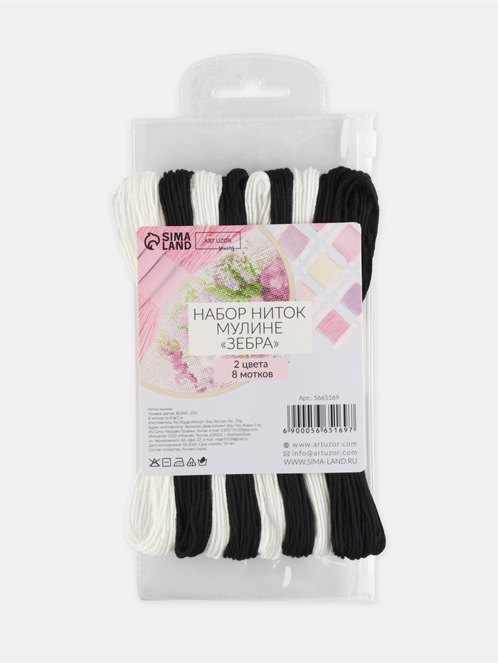 Нитки мулине, 8±1 м, 8 шт., белые, чёрные — Характеристики