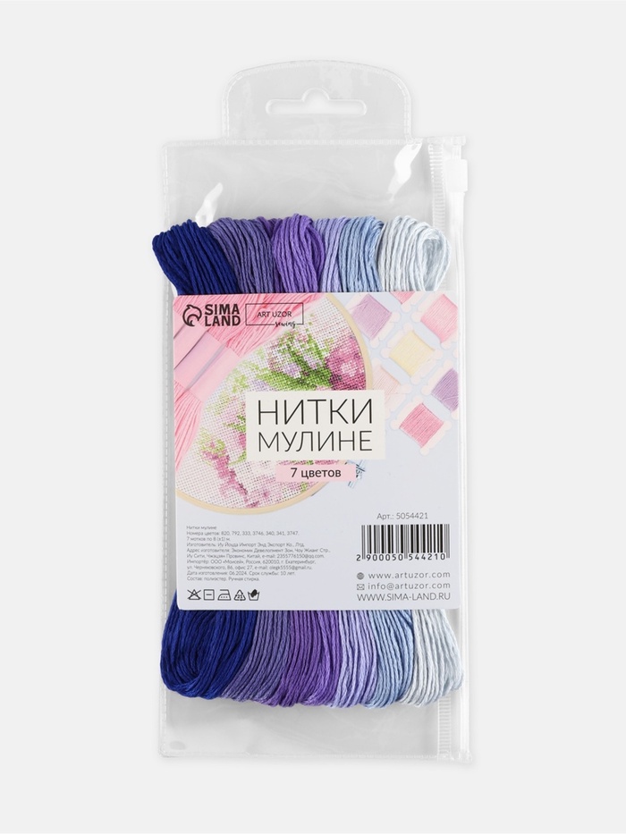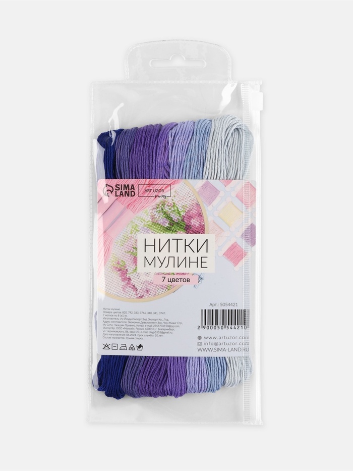 Нитки мулине, 8±1 м, набор 7 шт., фиолетовые — Характеристики