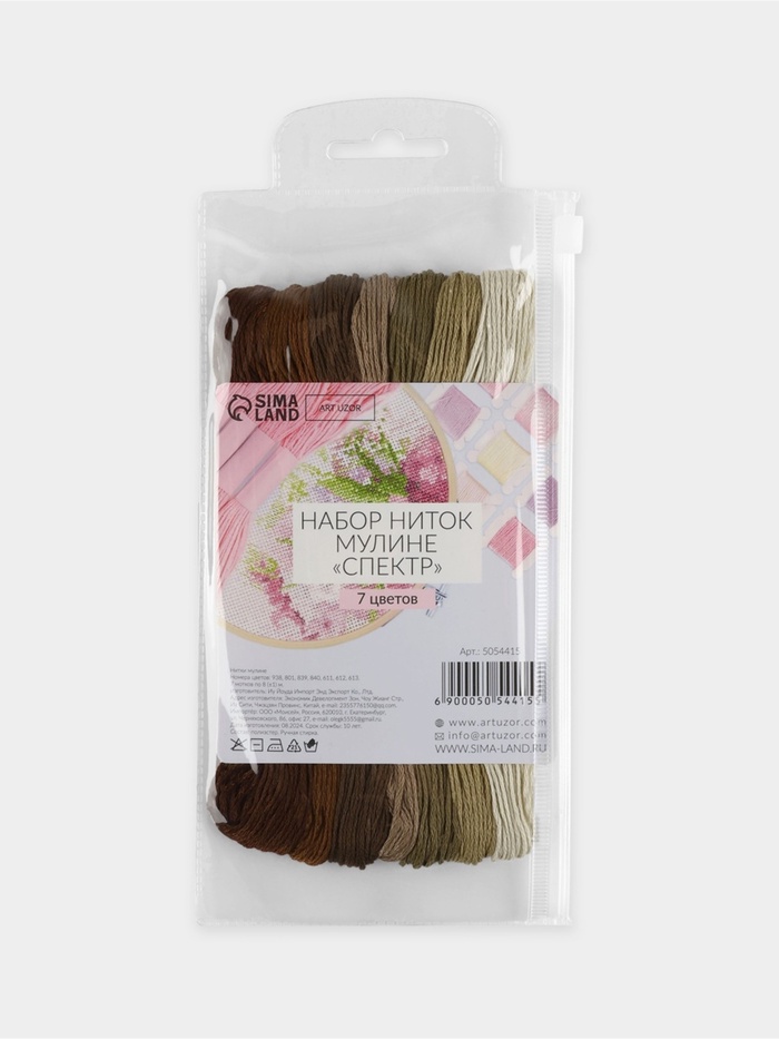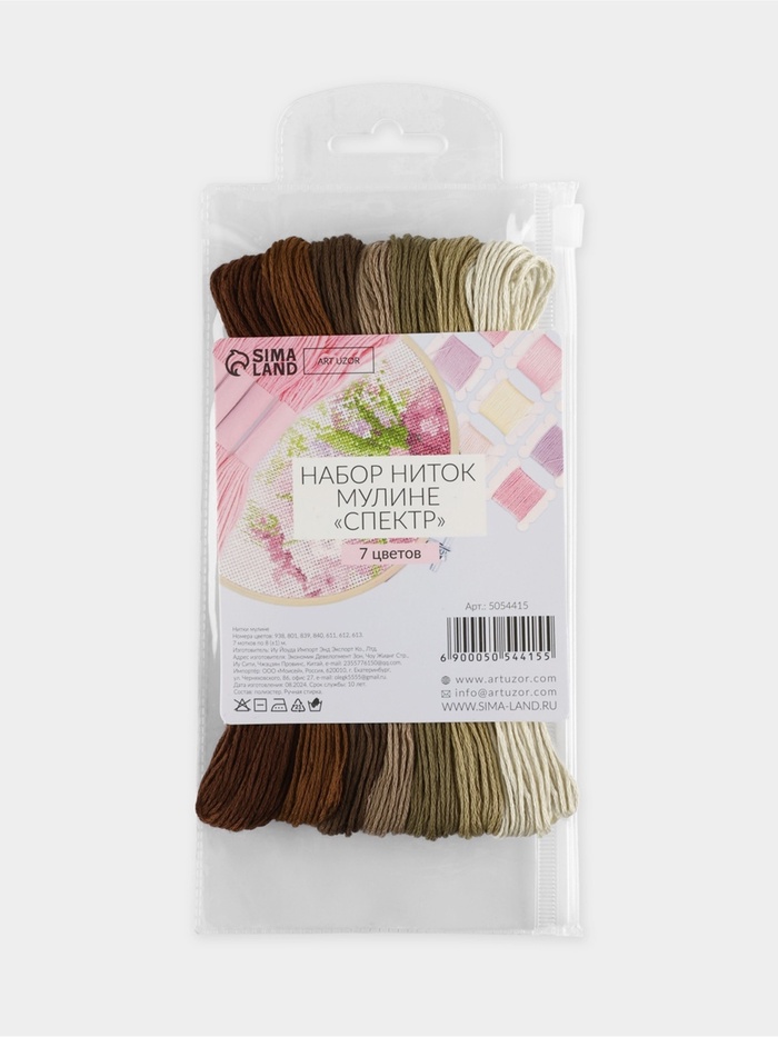 Нитки мулине, 8±1 м, набор 7 шт., коричневые — Характеристики