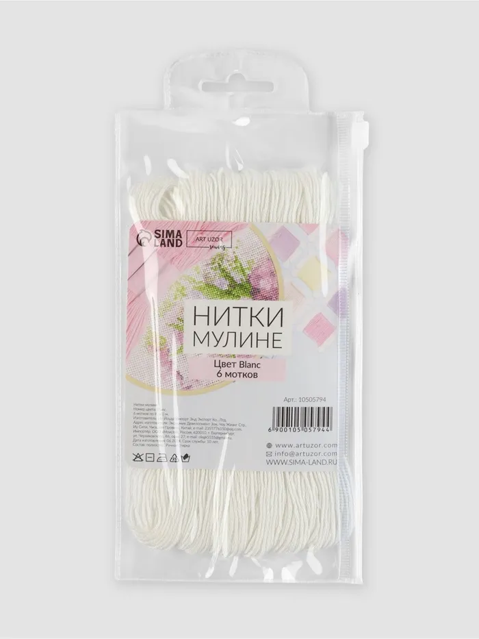 Нитки мулине Blanc, 8±1 м, набор 6 шт., белый — Характеристики