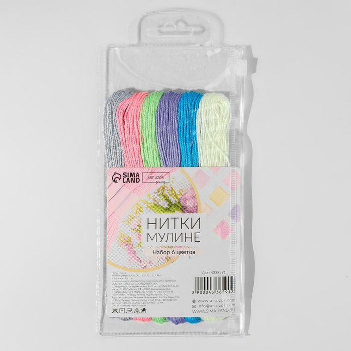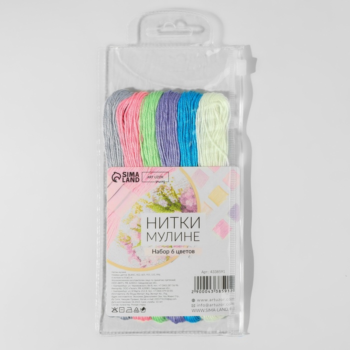 Нитки мулине №13, 8±1 м, набор 6 шт., разноцветные