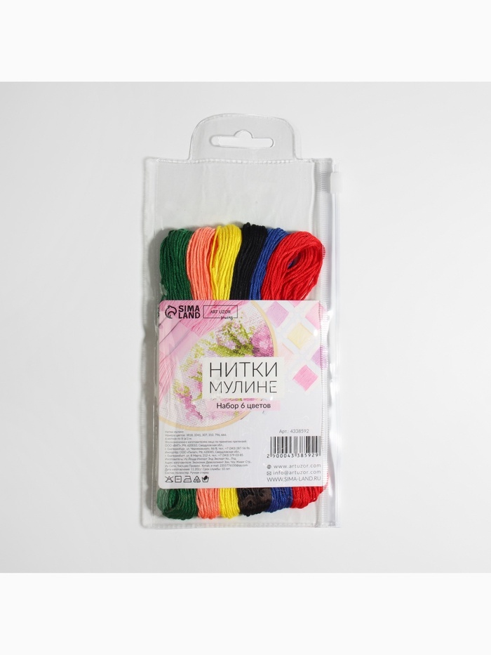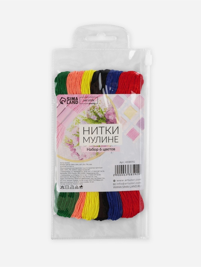 Нитки мулине №14, 8±1 м, набор 6 шт., разноцветные — Характеристики