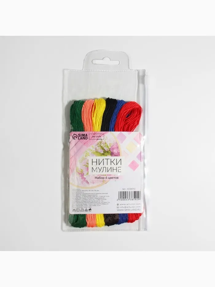 Нитки мулине №14, 8±1 м, набор 6 шт., разноцветные