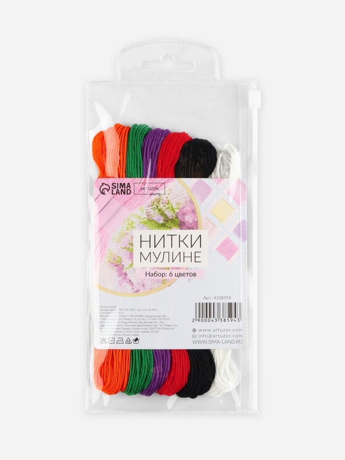 Нитки мулине №15, 8±1 м, набор 6 шт., разноцветные — Характеристики