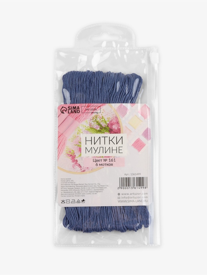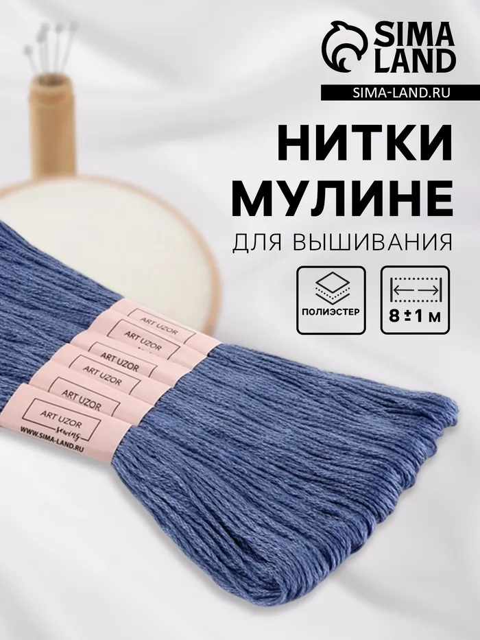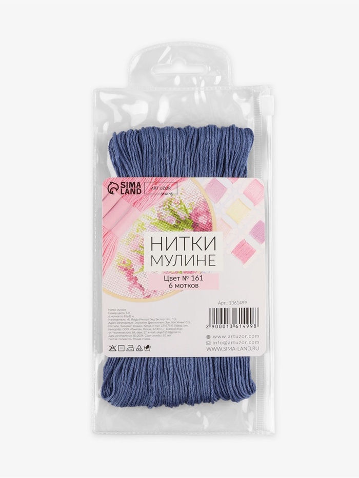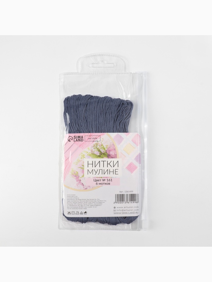 Нитки мулине №161, 8±1 м, набор 6 шт., серо-синий — Характеристики