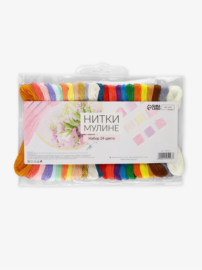 Нитки мулине, №2 - №6, 8±1 м, набор 24 шт., разноцветные — Характеристики