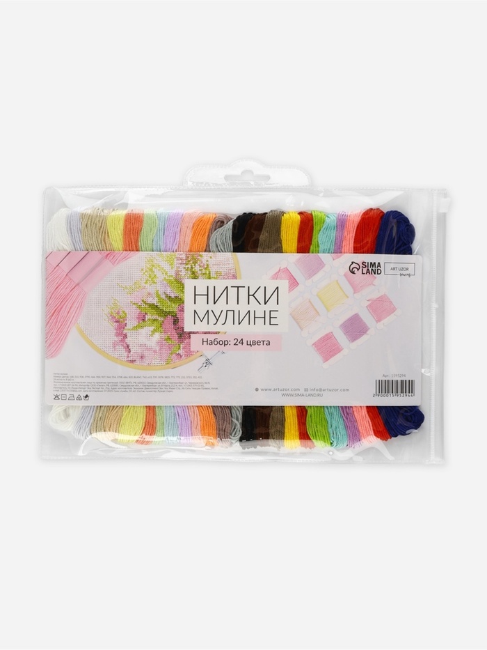 Нитки мулине, №3/4, 8±1 м, набор 24 шт., разноцветные — Характеристики
