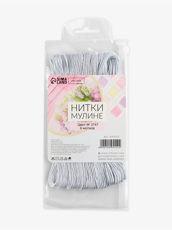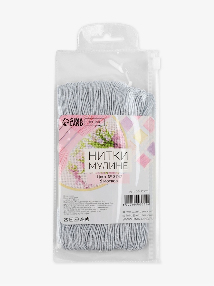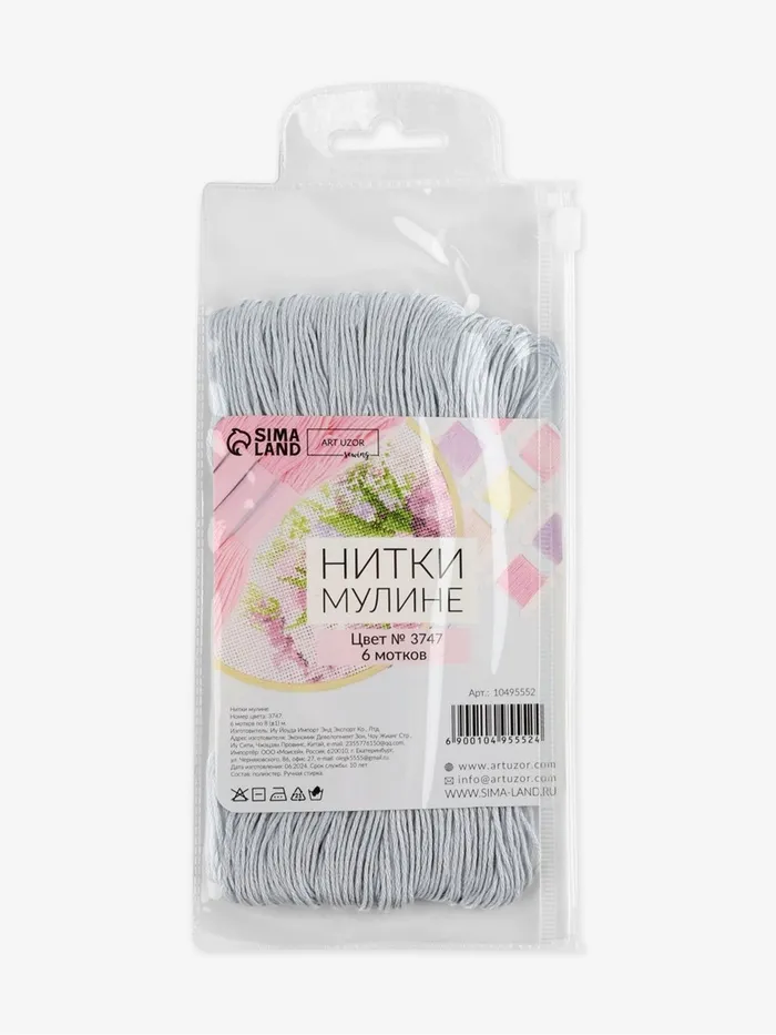 Нитки мулине №3742, 8±1 м, набор 6 шт., светло-серый — Характеристики