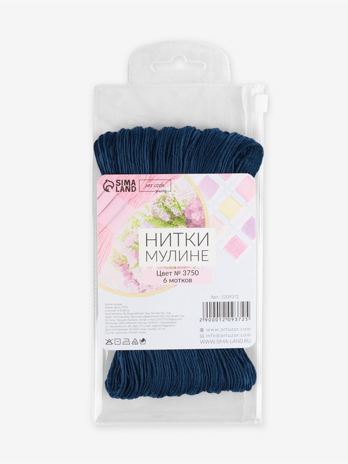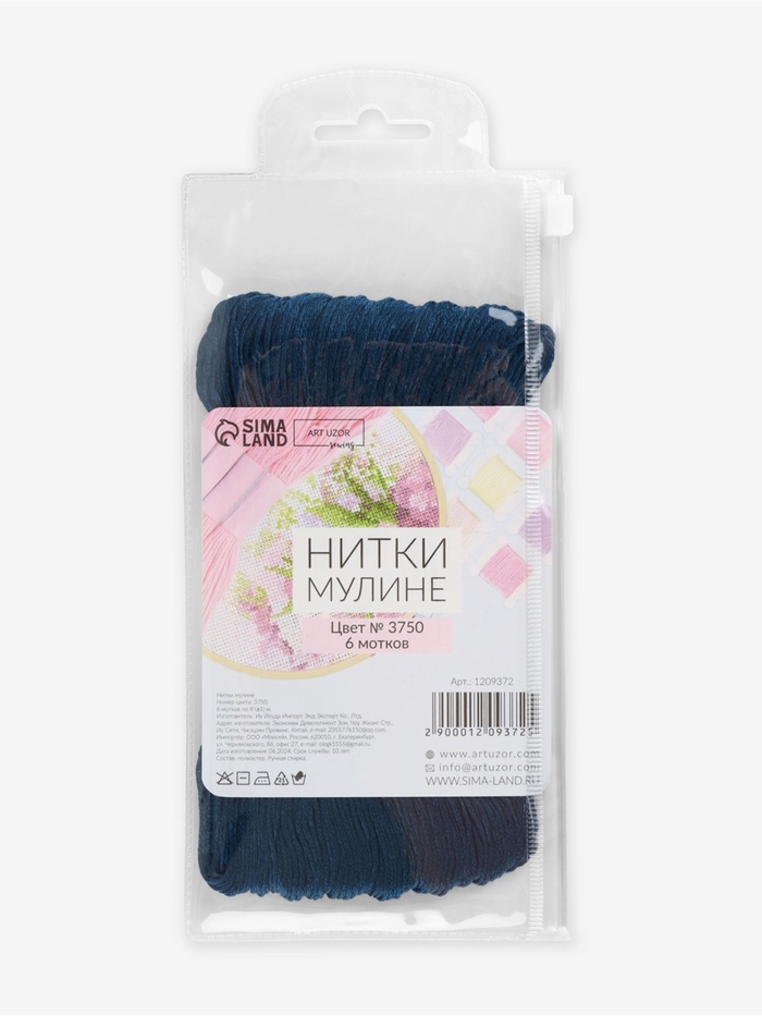 Нитки мулине №3750, 8±1 м, набор 6 шт., тёмно-синий — Характеристики