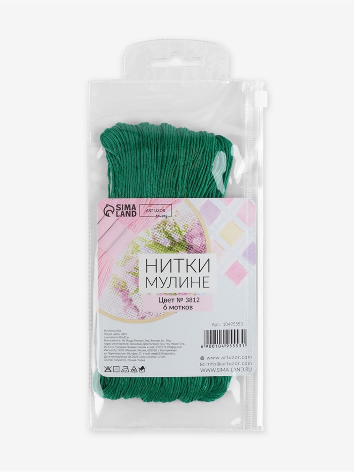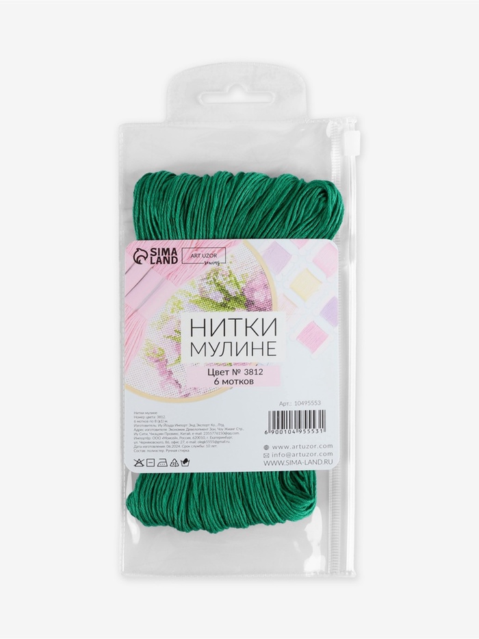 Нитки мулине №3812, 8±1 м, набор 6 шт., зелёный — Характеристики