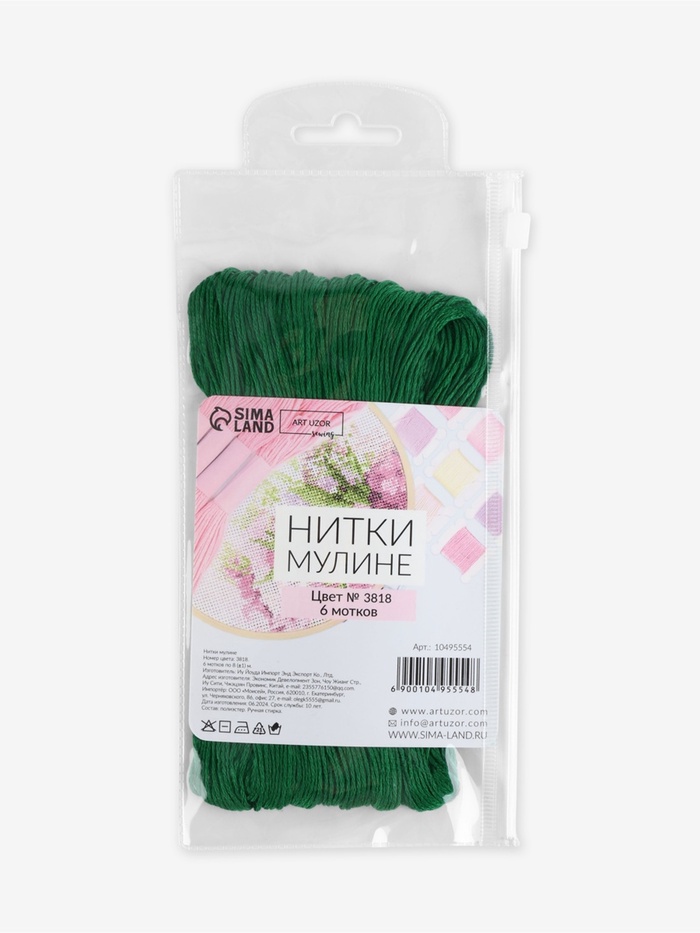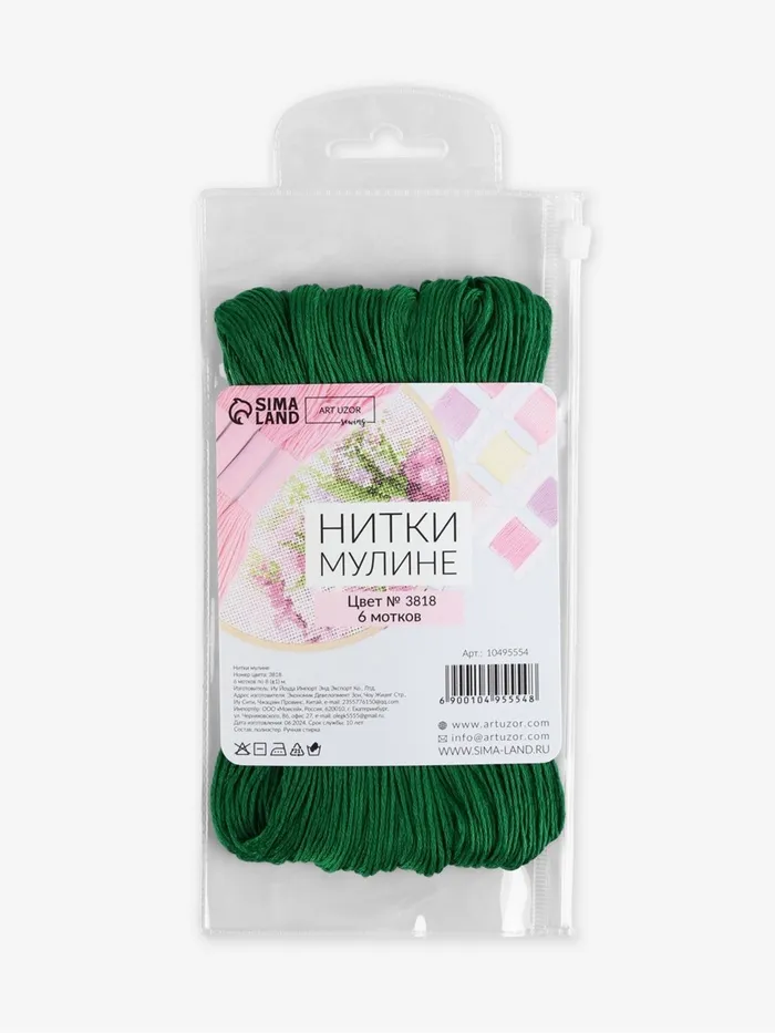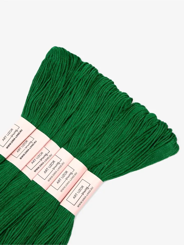 Изумрудные мулине станут отличным дополнением к вашему набору рукоделия. Этот комплект из 6 прочных и ярких нитей создан для воплощения уникальных творческих замыслов. Однотонный глубокий зелёный цвет привнесёт гармонию и натуральность в ваши изделия, будь то вышивка, шитьё или плетение. Эти полиэстеровые нити обладают долговечностью и стойкостью, что гарантирует долговременное сохранение цвета.