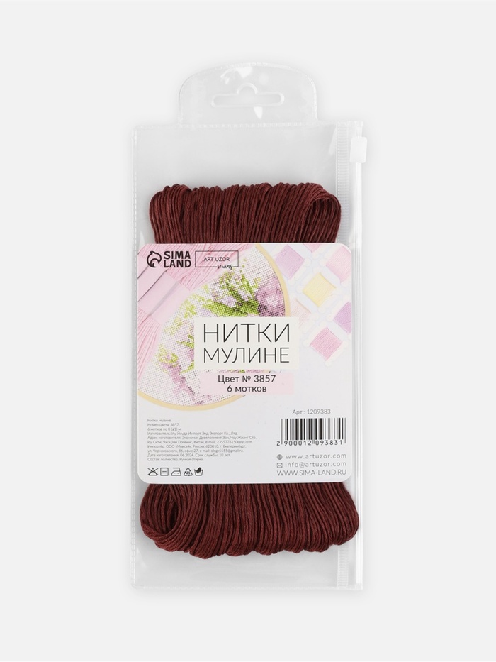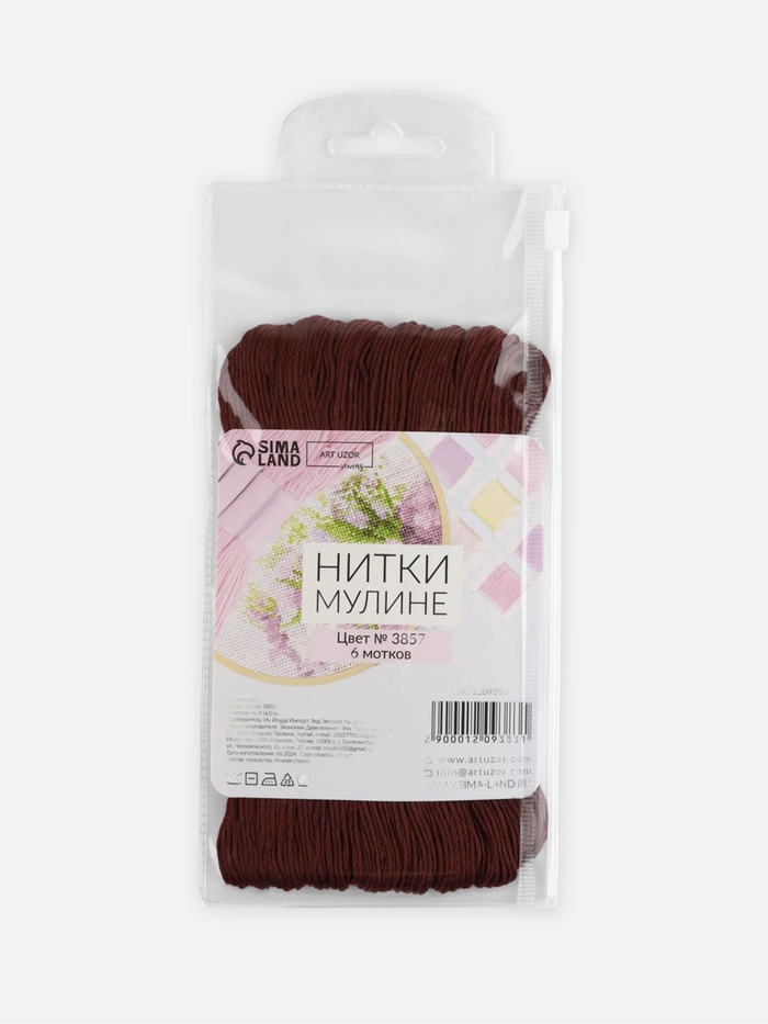 Нитки мулине №3857, 8±1 м, набор 6 шт., тёмно-коричневый — Характеристики