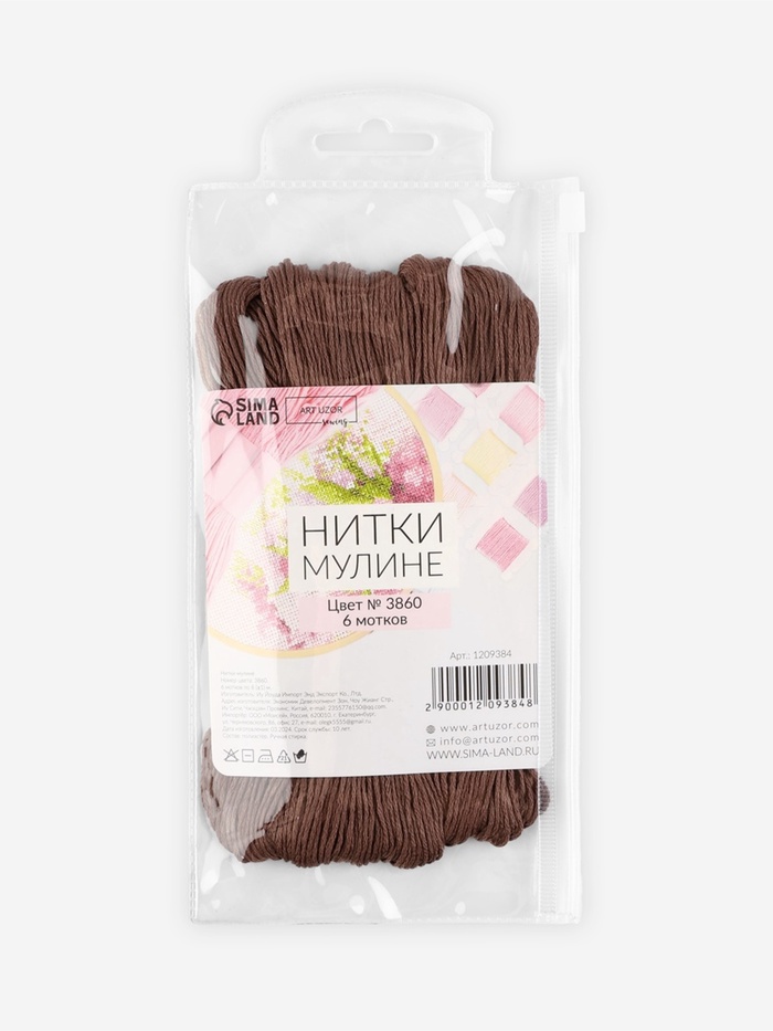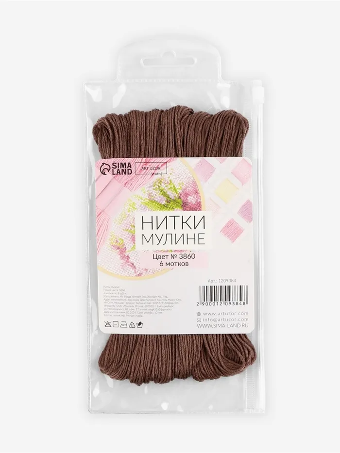 Нитки мулине №3860, 8±1 м, набор 6 шт., коричневый — Характеристики