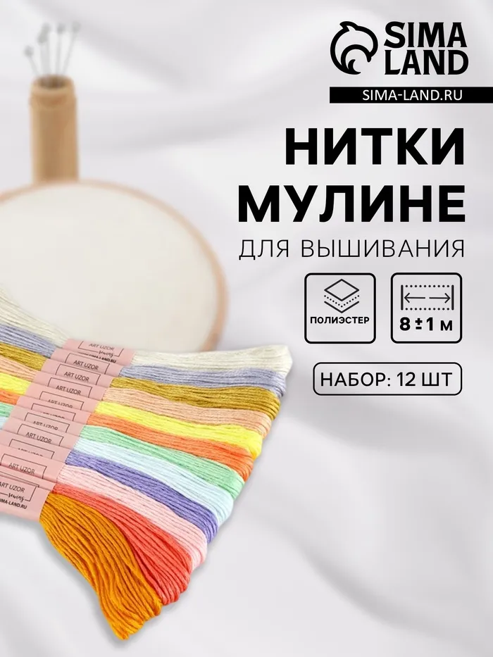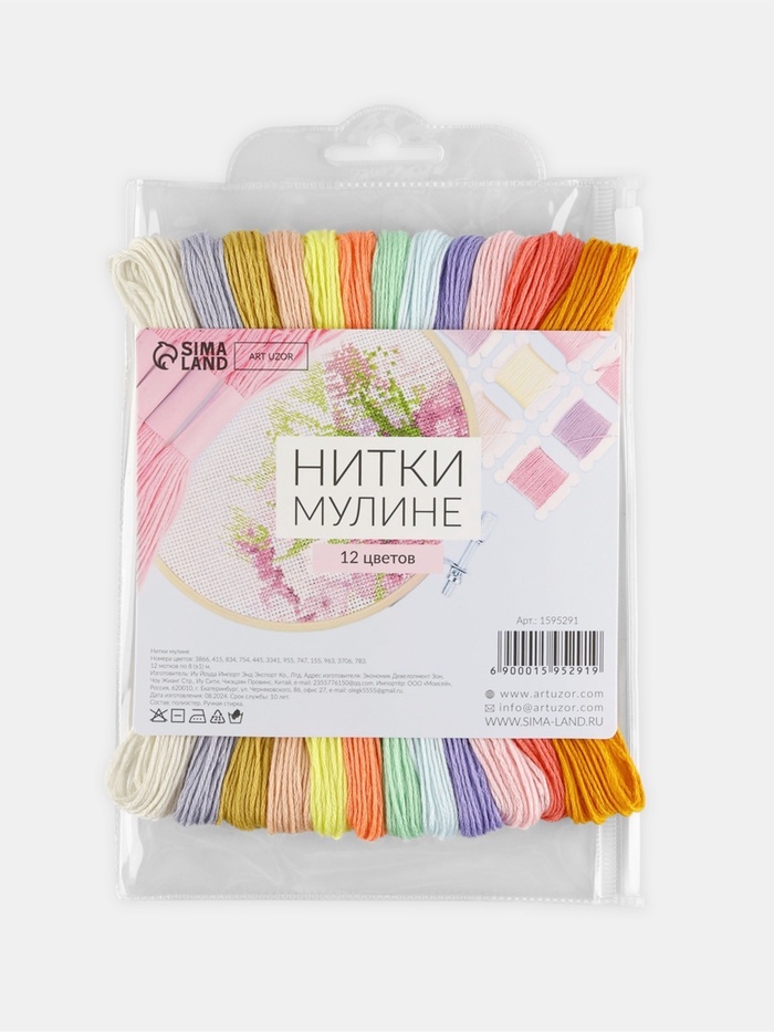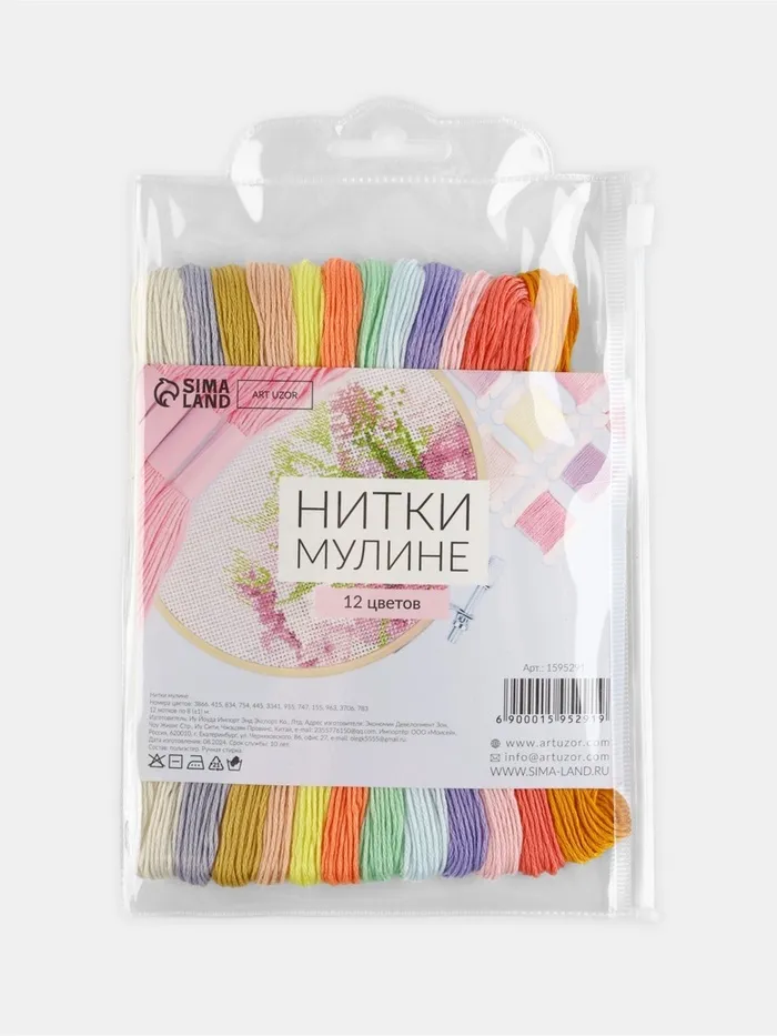 Нитки мулине №6, 8±1 м, набор 12 шт., разноцветные — Характеристики