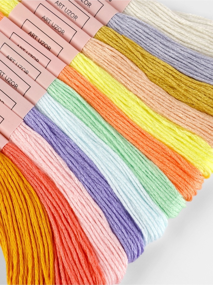 Нитки мулине №6, 8±1 м, набор 12 шт., разноцветные