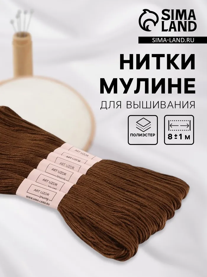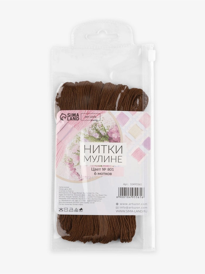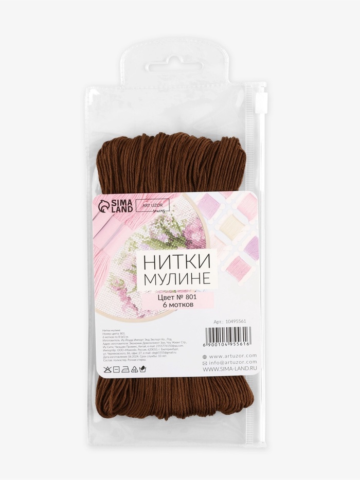 Нитки мулине №801, 8±1 м, набор 6 шт., тёмно-коричневые — Характеристики