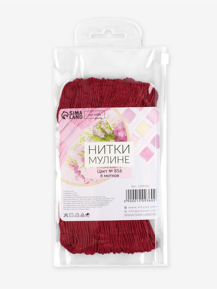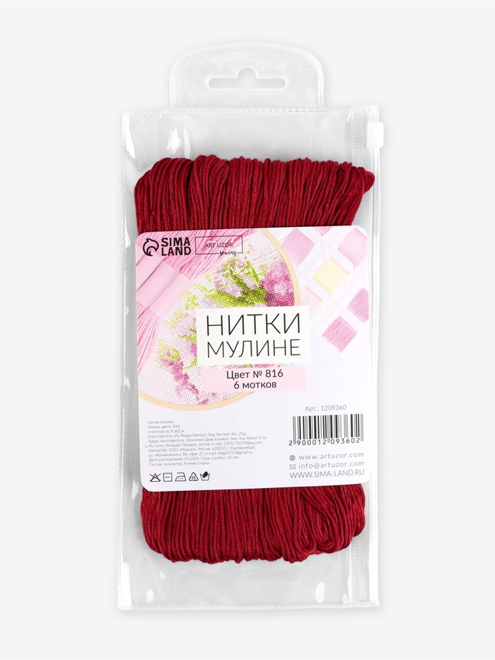 Нитки мулине №816, 8±1 м, набор 6 шт., ярко-красные — Характеристики