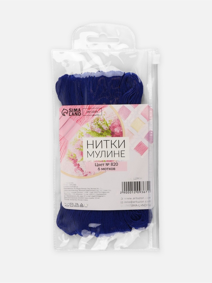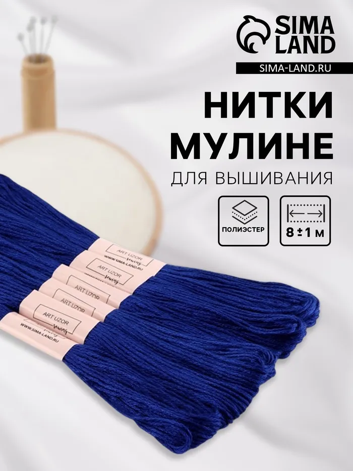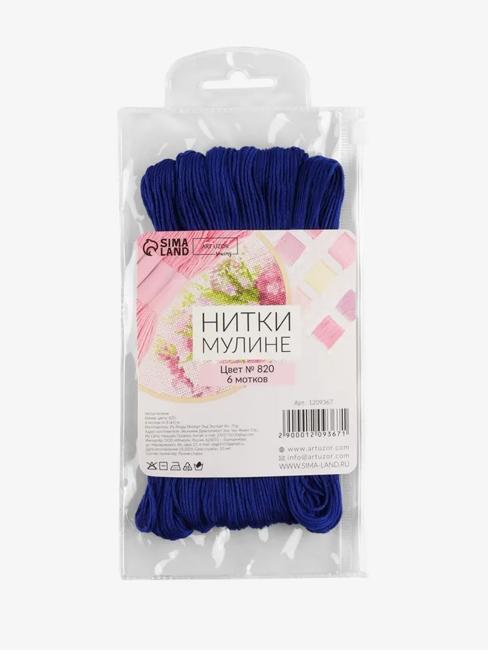 Нитки мулине №820, 8±1 м, набор 6 шт., тёмно-синие — Характеристики
