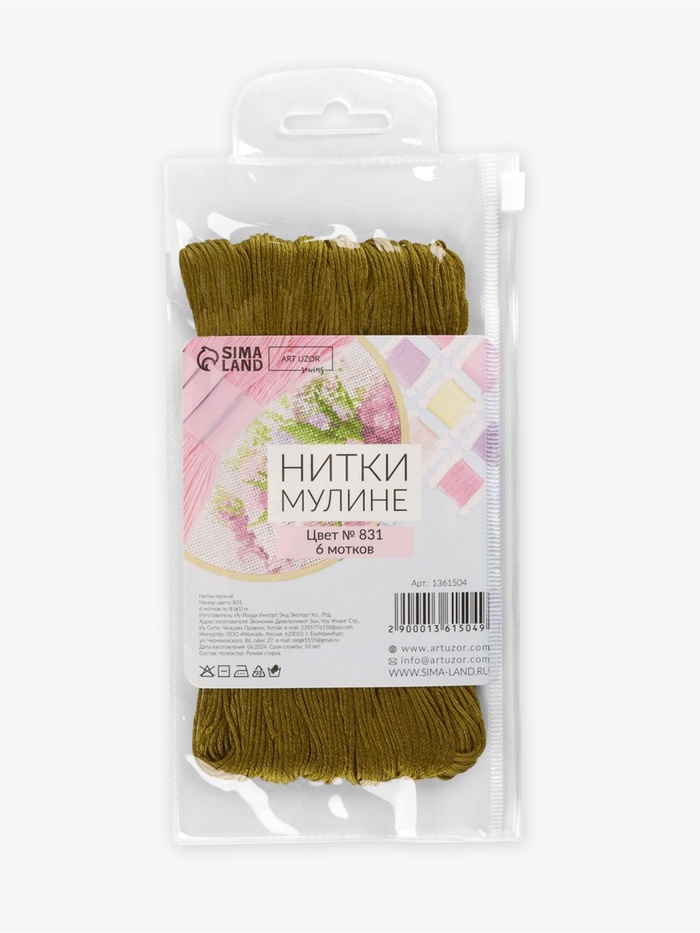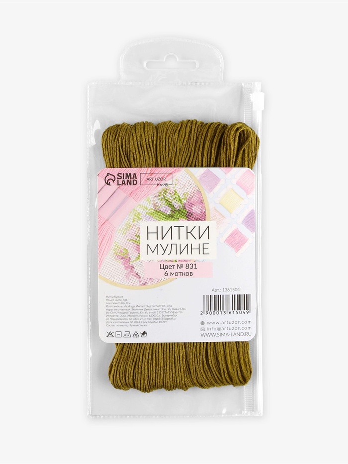 Нитки мулине №831, 8±1 м, набор 6 шт., оливковые — Характеристики