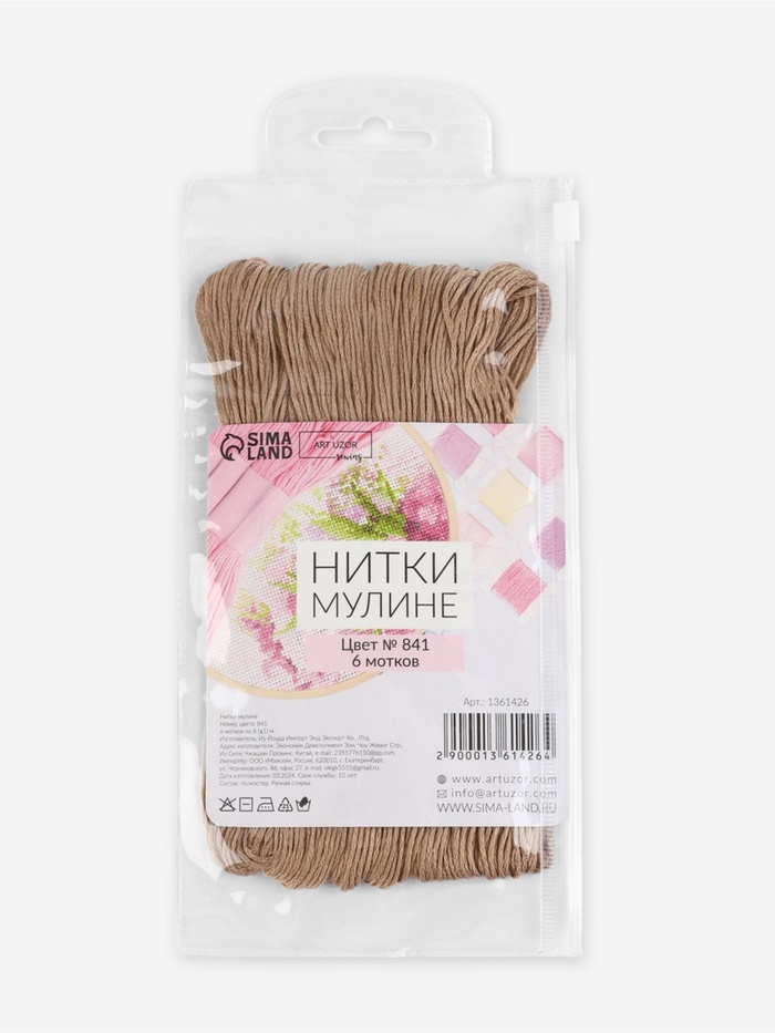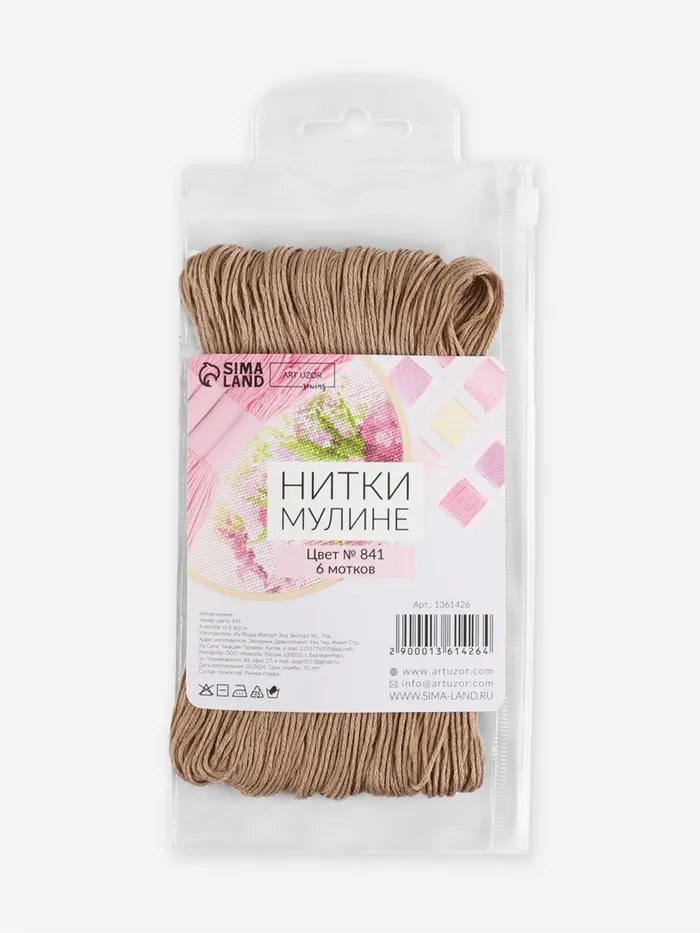 Нитки мулине №841, 8±1 м, набор 6 шт., тёмно-бежевые — Характеристики