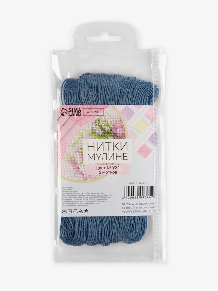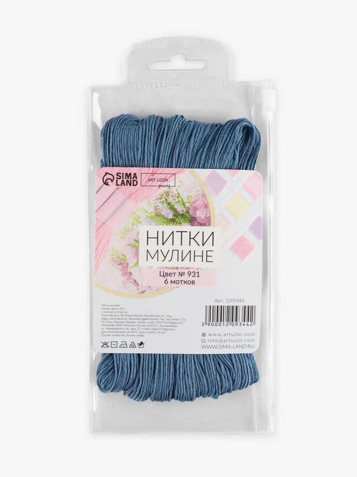 Нитки мулине №931, 8±1 м, набор 6 шт., серо-синие — Характеристики