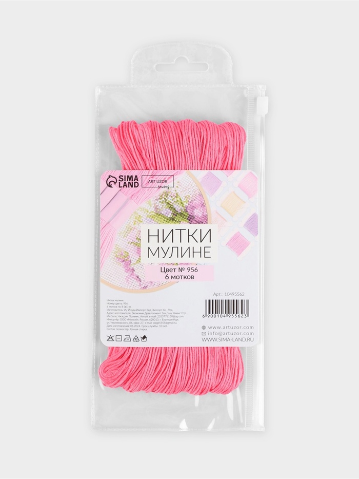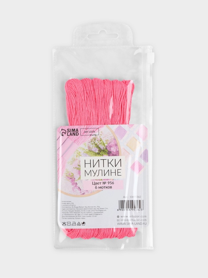 Нитки мулине №956, 8±1 м, набор 6 шт., ярко-розовый — Характеристики