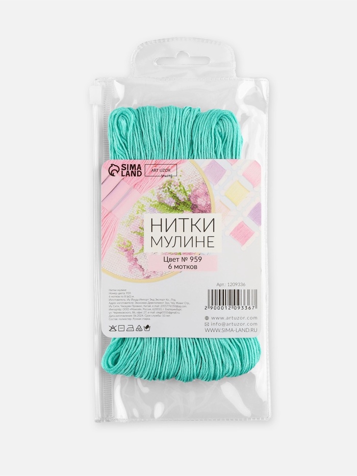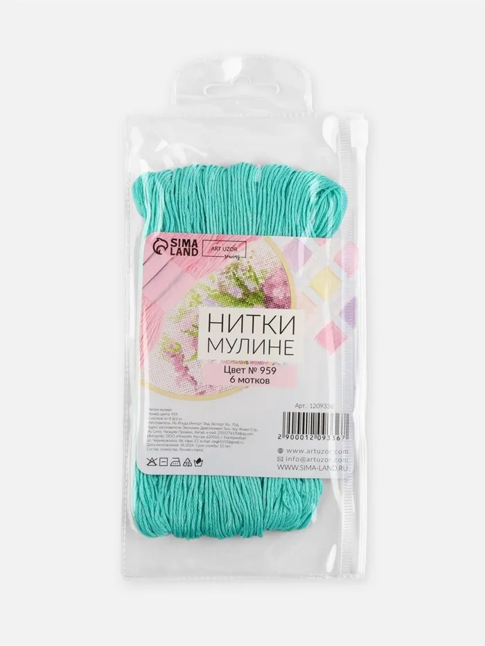 Нитки мулине №959, 8±1 м, набор 6 шт., бирюзовый — Характеристики
