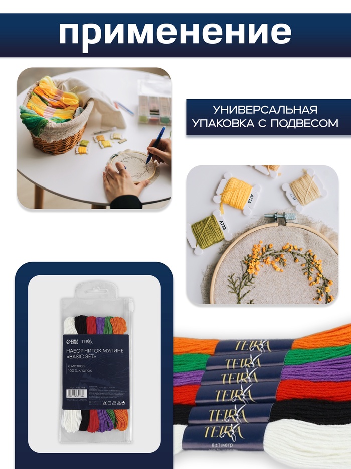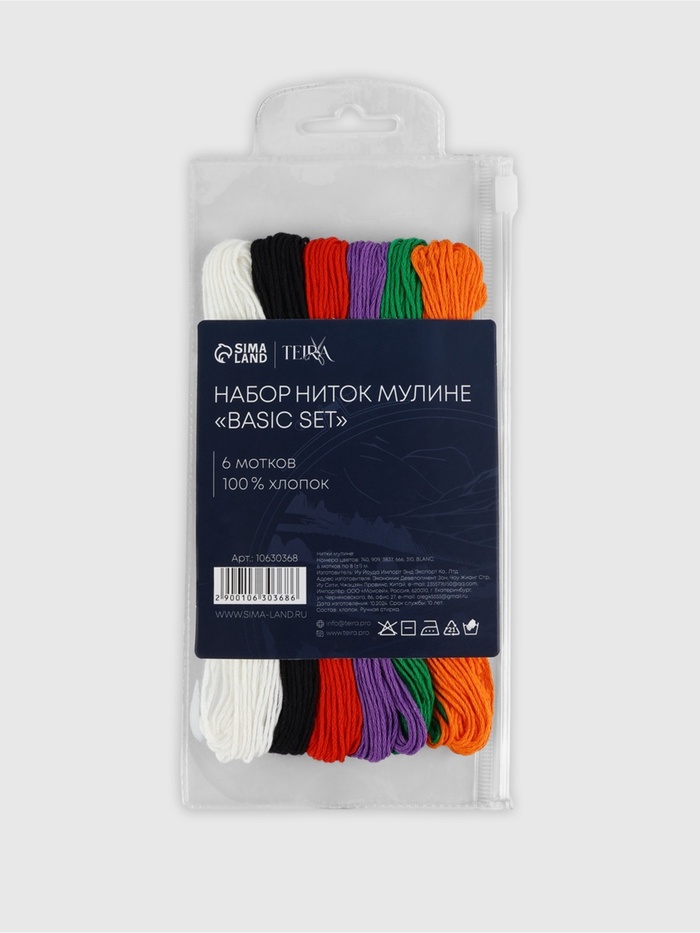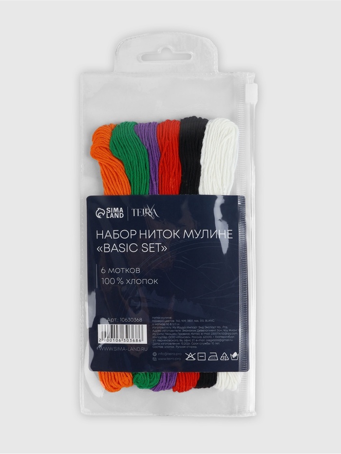 Нитки мулине TEIRA, 8±1 м, набор 6 шт., хлопок, разноцветные — Характеристики