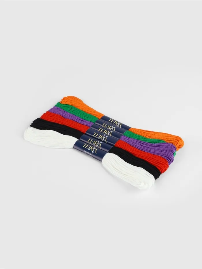 - 6 насыщенных оттенков: в наборе — разноцветные нитки, подходящие как для детских поделок, так и для сложных схем вышивания. Каждый цвет легко отличим, а при смешивании даёт интересные переходы.