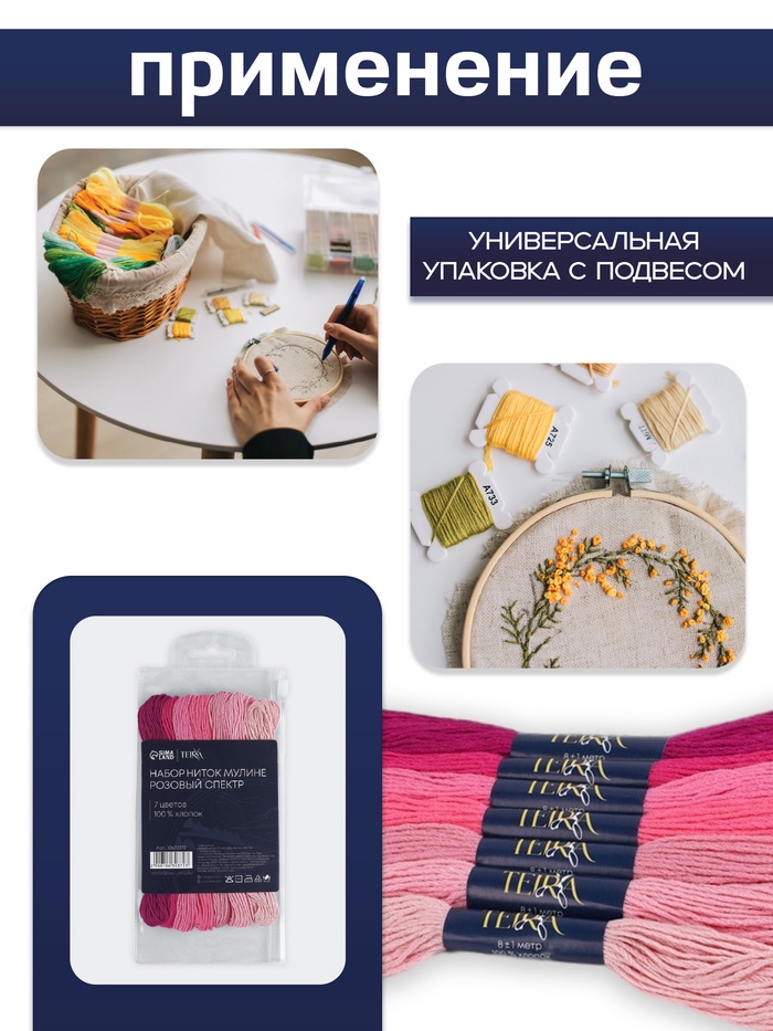 Эти мягкие и прочные нити идеально подходят для вышивания крестом, гладью или декорирования текстиля. Благодаря своей универсальности, они станут надёжным помощником как для начинающих мастеров, так и для профессионалов. Их насыщенные, но при этом нежные тона сохраняют яркость даже после стирки, что гарантирует долговечность готовых изделий.