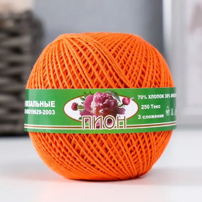 Нитки вязальные "Пион" 200м/50гр 70% хлопок, 30% вискоза цвет 0502 — Характеристики