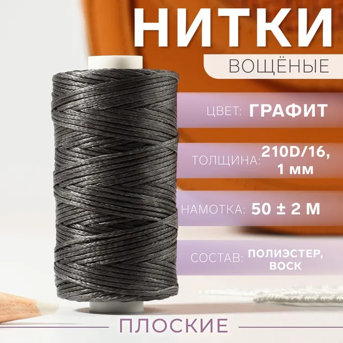 Нитки вощёные, плетёные, плоские, 210D/16, 1 мм, 50±2 м, графитовые — Характеристики