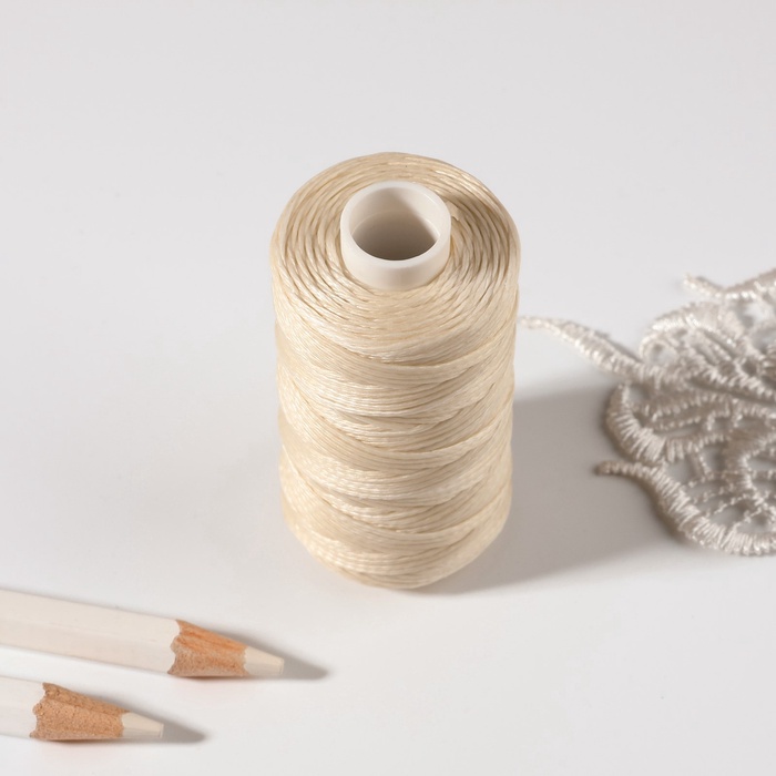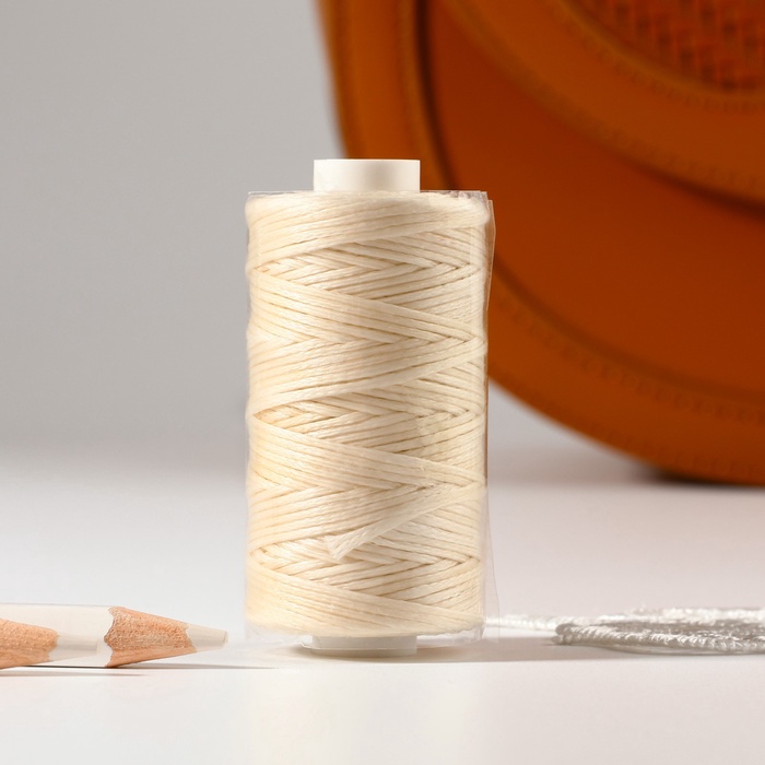 Нитки вощёные, плетёные, плоские, 210D/16, 1 мм, 50±2 м, молочные