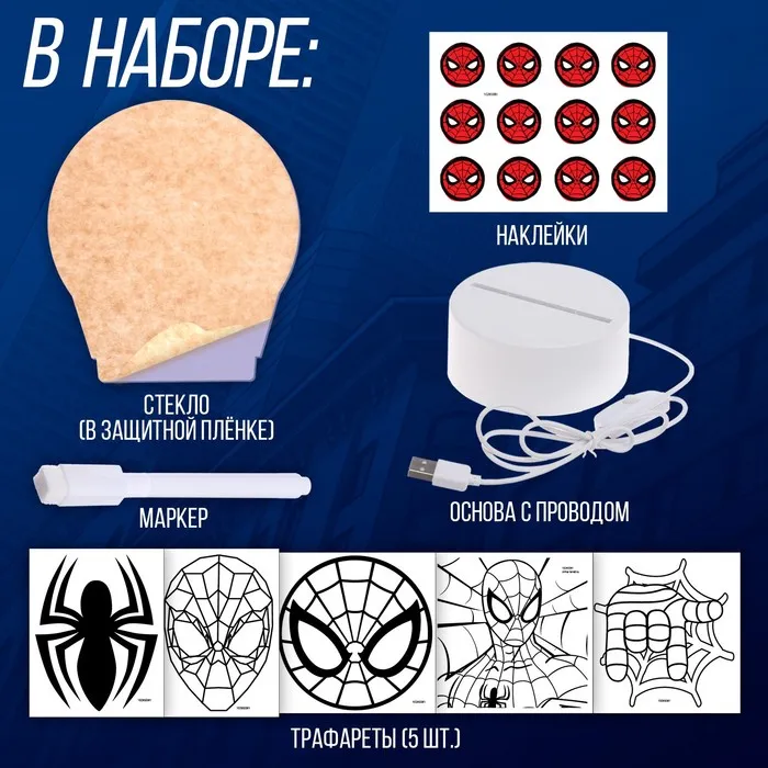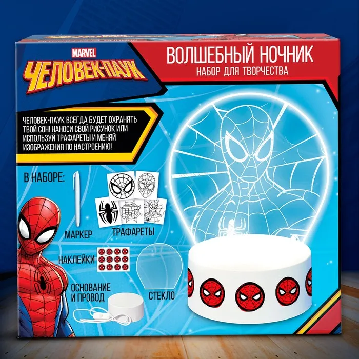 Ночник «Человек-паук», 5 трафаретов, с маркером, с наклейками — Характеристики