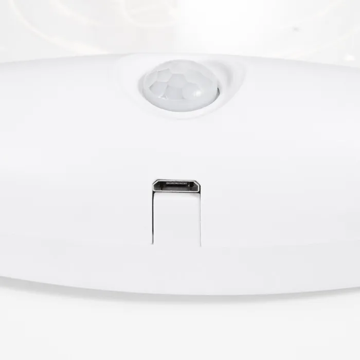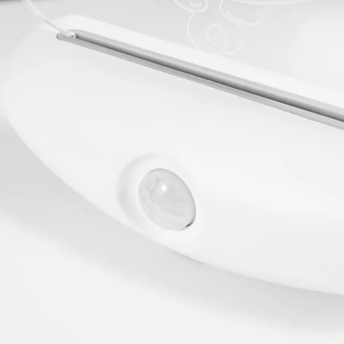 Ночник оснащён датчиком движения, который срабатывает в тот момент, когда вы проходите мимо. Радиус действия — 120 градусов. Светильник будет работать всё время, пока в радиусе его действия будет происходить движение. Выключение произойдет через 10 секунд, после того, как вы покинете его зону действия. Очень удобен для освещения детской, коридора, на кухне и лестничных пролетов дома или на даче.