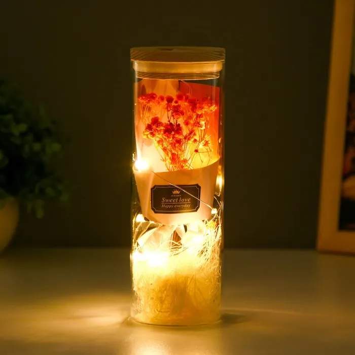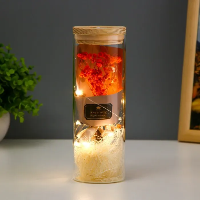Ночник колба "Букет из красных цветов" LED от батареек LR1130 6,5х6,5х19 см RISALUX — Характеристики