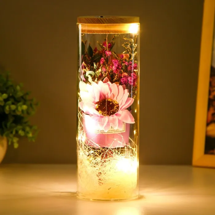 Ночник колба "Букет с розовым цветком" LED от батареек LR1130 8х8х23 см RISALUX — Характеристики
