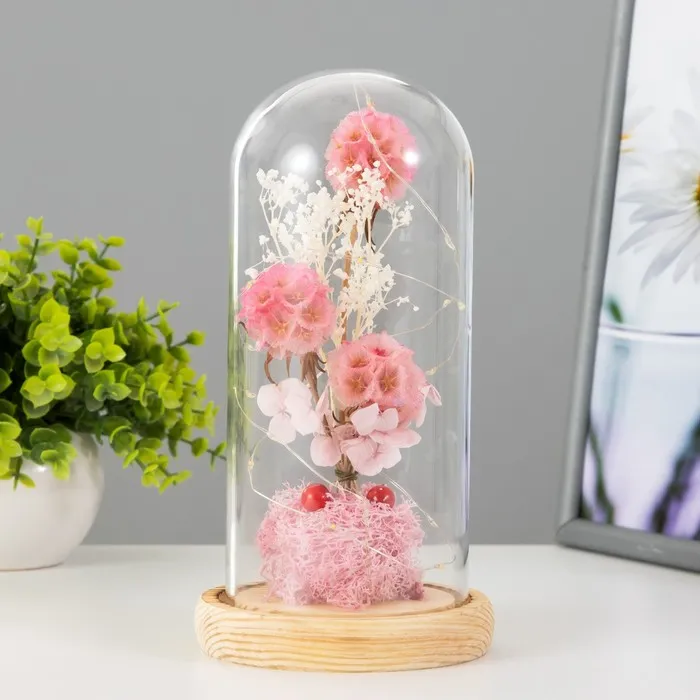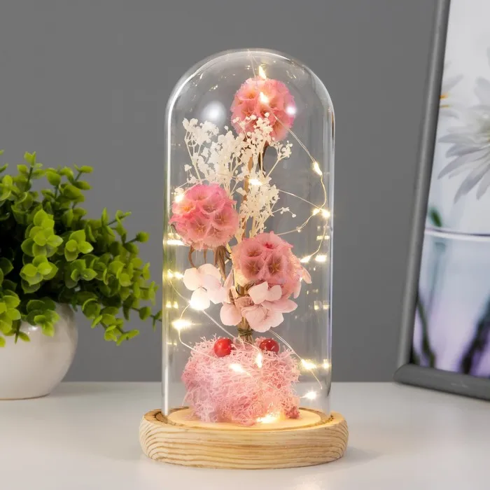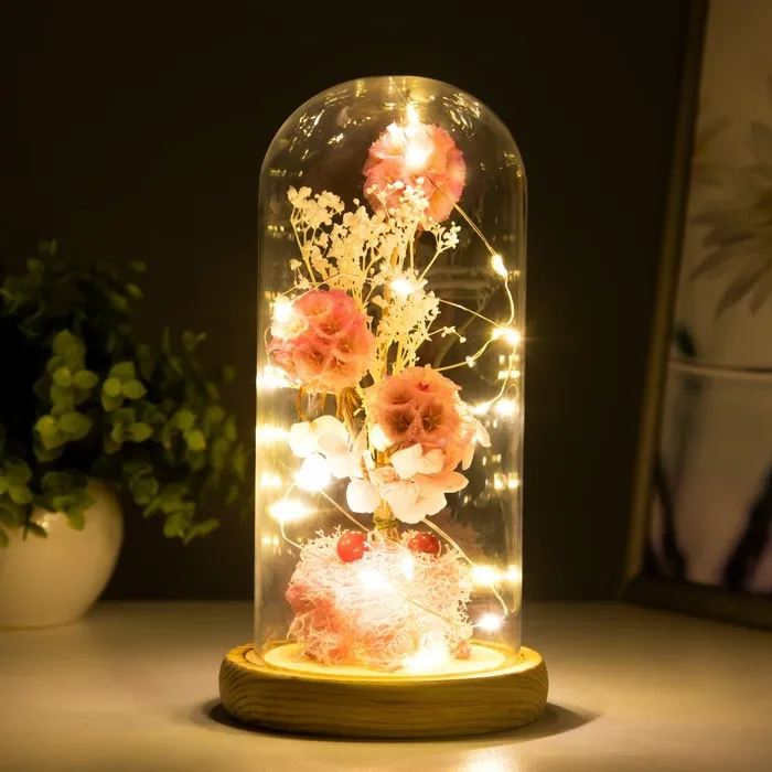 Великолепный ночник и подарок в одном аксессуаре. Этот вечный цветок не вянет и не требует особого ухода. Такие композиции часто применяют во флористике, упаковке подарков и дизайне интерьеров.